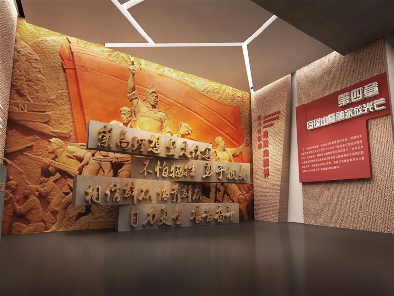 展厅布置多项场景复原,配合声光电,突出反映四个艰—— “最艰难的岁月、最艰苦的斗争、最坚强的战士、最坚定的信念”,再现这一时期锻造形成的母瑞山革命精神,同时展示出母瑞山对琼崖革命的重要意义以及在当代人们对母瑞山革命精神的传承和发展。
