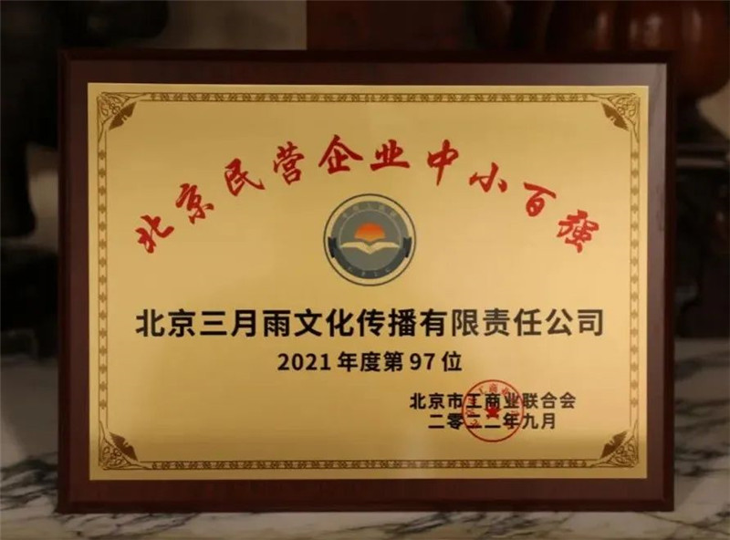 日前,由北京市工商联组织评选的“2022北京民营企业中小百强”正式公布,三月雨荣誉登榜。