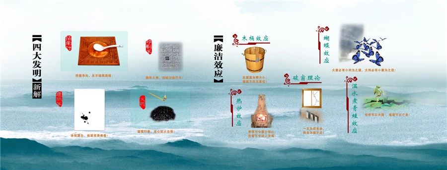 在参观顺序上,长廊内容是一个让参观者由了解,到认知再到感悟的过程,具有缜密合理的内在逻辑,旨在让参观者先知而后行,达到知行合一的廉洁境界。