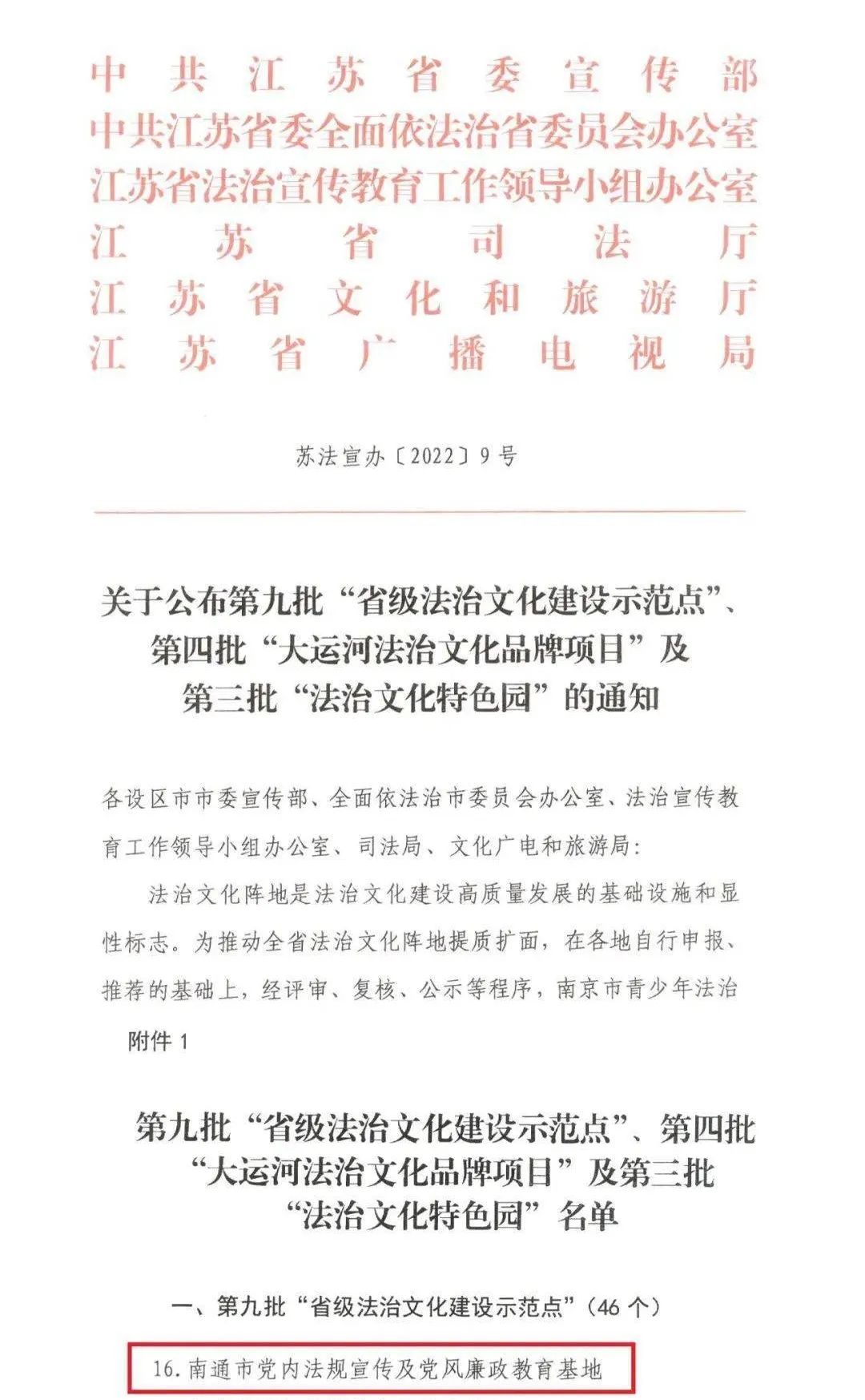 榜上有名|“南通市党风廉政教育基地”获评“省级法治文化建设示范点”