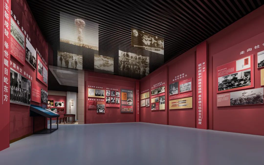 江西师范大学红色文化教育馆,位于江西师范大学校内,展陈面积约3300平方米,是一个集“四史”与江西红色文化展示为一体的红色教育全矩阵载体。其中,“四史”展馆中的“新中国史”展厅,以“发展”为主题,通过图文展览、情景再现、体验互动、科技应用、舞台表演等展陈形式,全景式的展现中国共产党领导中华民族站起来、富起来、强起来的实践历程,也回答了“中国特色社会主义为什么好”的问题。