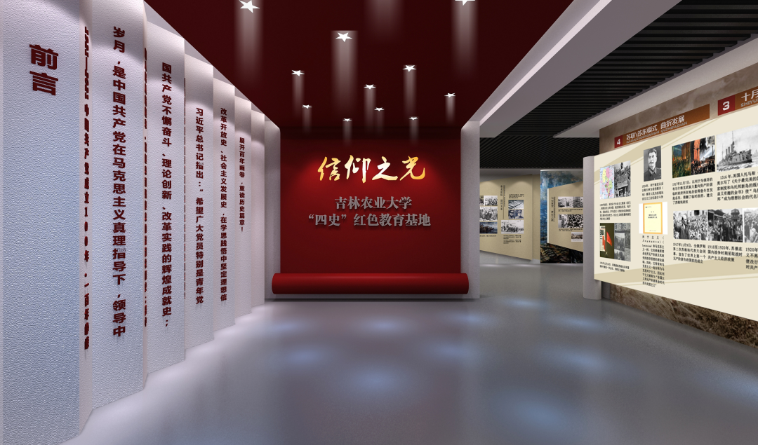 在由三月雨设计建设的吉林农业大学红色教育基地,一个以“信仰之光”为主题的展馆,点亮了一代青年学子的理想信念新航程。