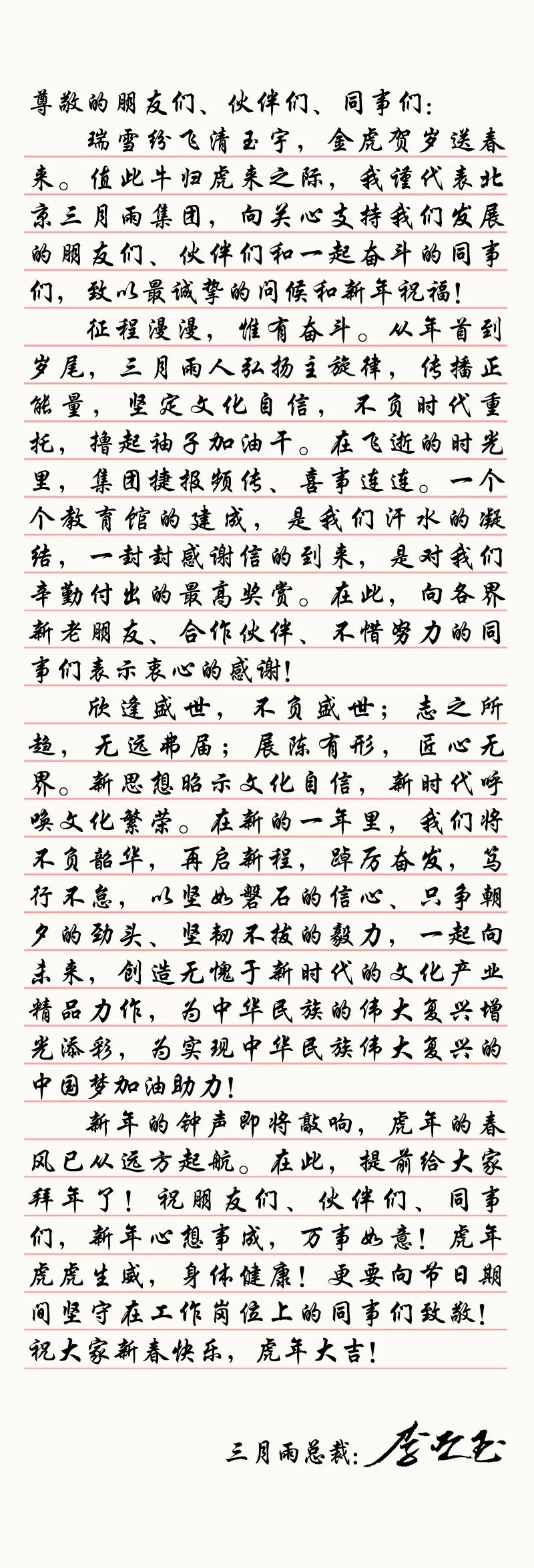 三月雨总裁2022年新春贺词|勇毅前行 一起向未来